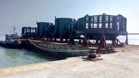 barge with a special skidding float technique.