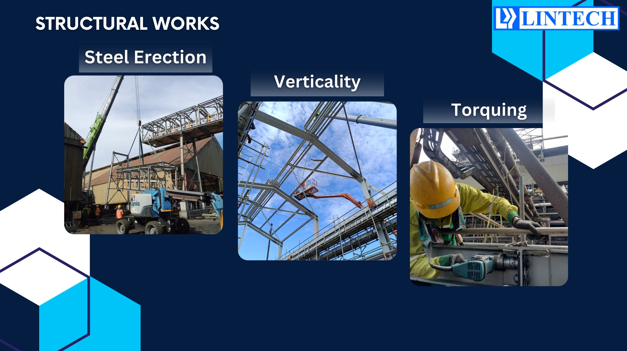 steel structures, effective in time and cost in handling and fabrication process, and safely loading to Lintech’s managed shipping division/ transporter and working